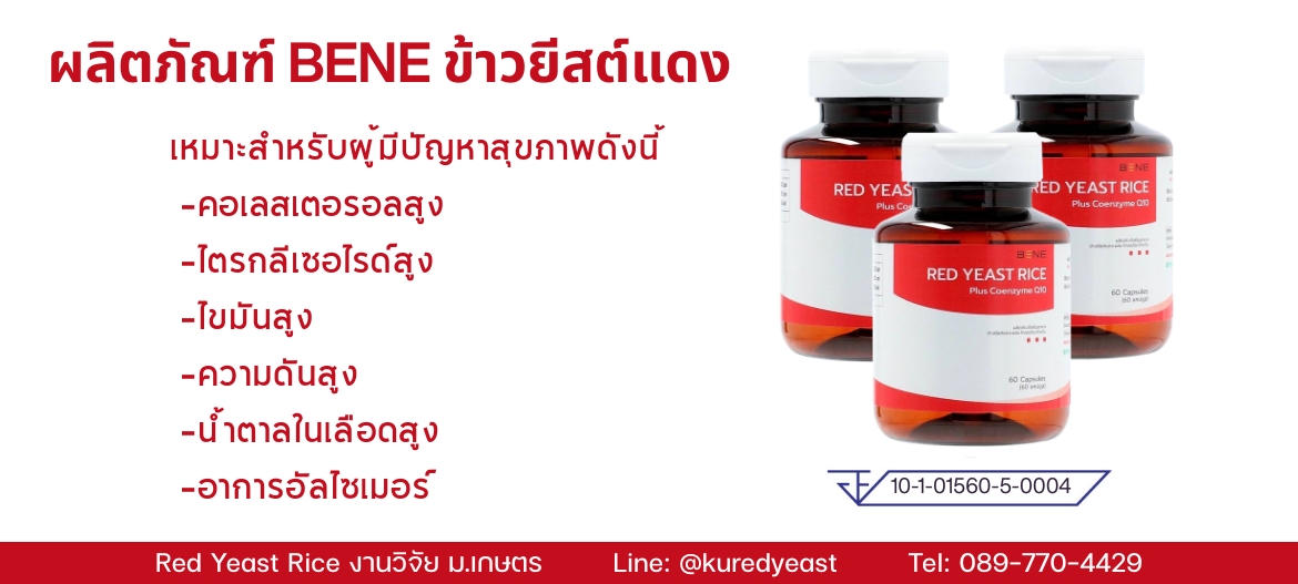 เรื่องราวและที่มาของผลิตภัณฑ์ข้าวยีสต์แดง BENE Red Yeast Rice สารออกฤทธิ์สำคัญในข้าวยีสต์แดง จาก บทสัมภาษณ์ ศ.ดร.บุษบา ยงสมิทธิ์ ภาควิชาจุลชีววิทยา คณะวิทยาศาสตร์ มหาวิทยาลัยเกษตรศาสตร์ Red Yeast Rice ผลิตภัณฑ์ข้าวยีสต์แดงเป็นผลงานวิจัยที่ทำโดยคนไทย จุลินทรีย์ไทย ข้าวไทย เพื่อคนไทย โดยนักวิจัยที่เชี่ยวชาญ มีการตรวจสอบสารสำคัญ ตรวจสอบความปลอดภัยและสารปนเปื้อนอย่างสม่ำเสมอ จึงมั่นใจได้ว่าลูกค้าจะได้ผลิตภัณฑ์ Red Yeast Rice มีคุณภาพจริงๆ
