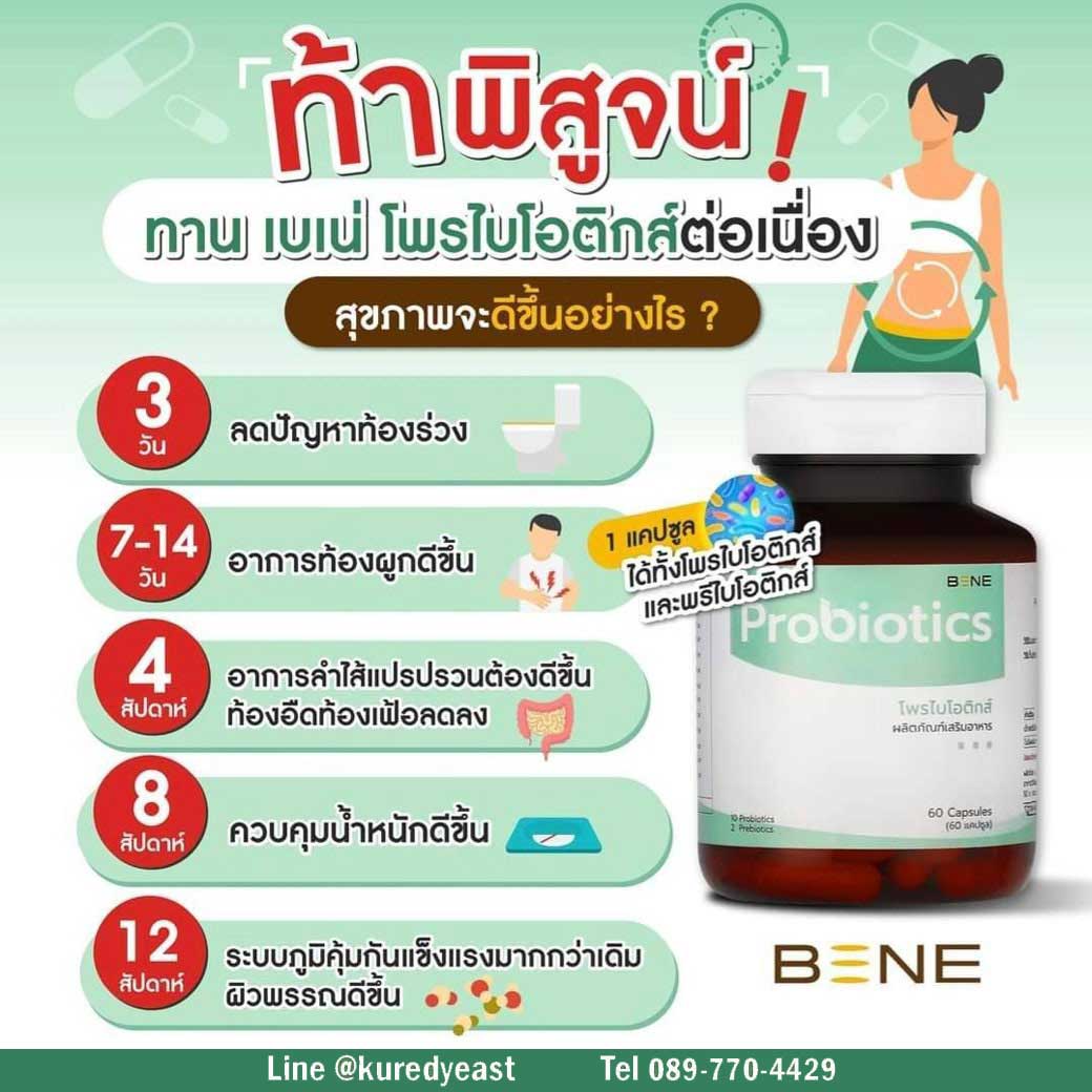 ผลิตภัณฑ์โพรไบโอติกส์ Probiotics จาก BENE ช่วยปรับสมดุลลำไส้ มีปริมาณจุลินทรีย์ดีสูงถึง 5-8พันล้าน CFUs เพิ่มประสิทธิภาพการดูดซึมอาหารให้กับลำไส้ ทำให้ชับถ่ายดี มีภูมิคุ้มกัน ลดกรดไหลย้อน เหมาะสำหรับผู้ที่ต้องการปรับสมดุลลำไส้ สร้างสมดุลระบบย่อยอาหารและระบบขับถ่าย ลดความเสี่ยงการเกิดโรคมะเร็งลำไส้