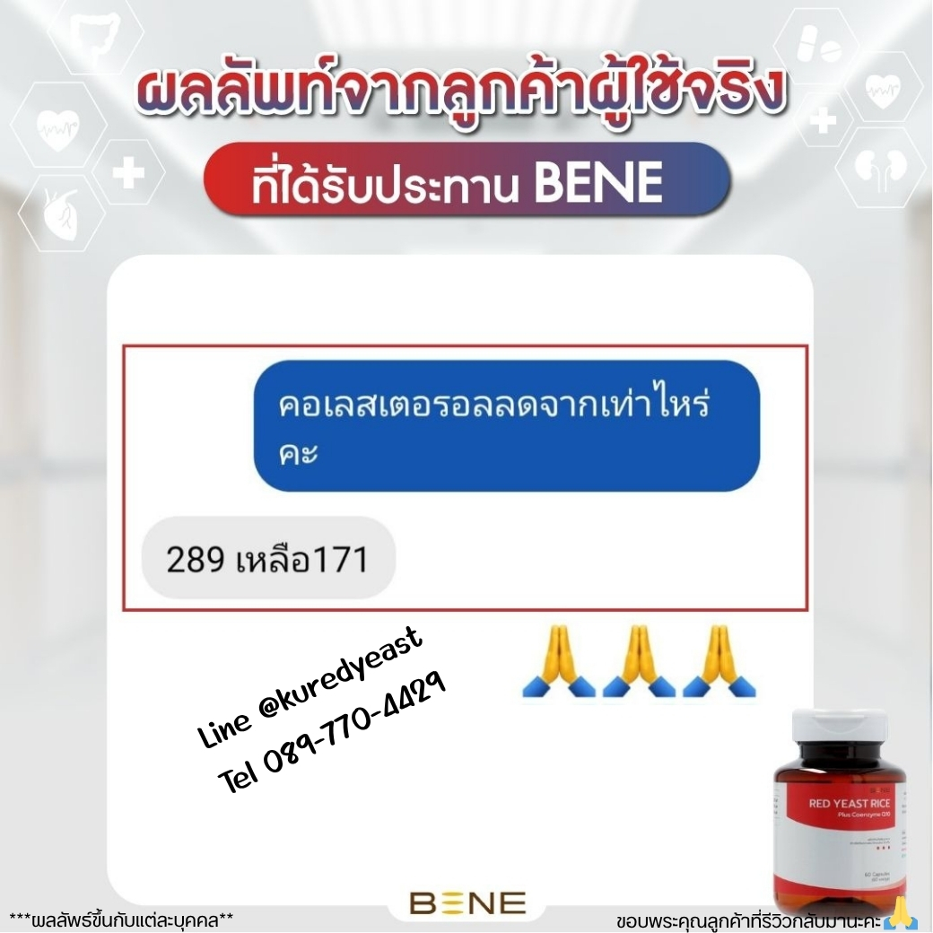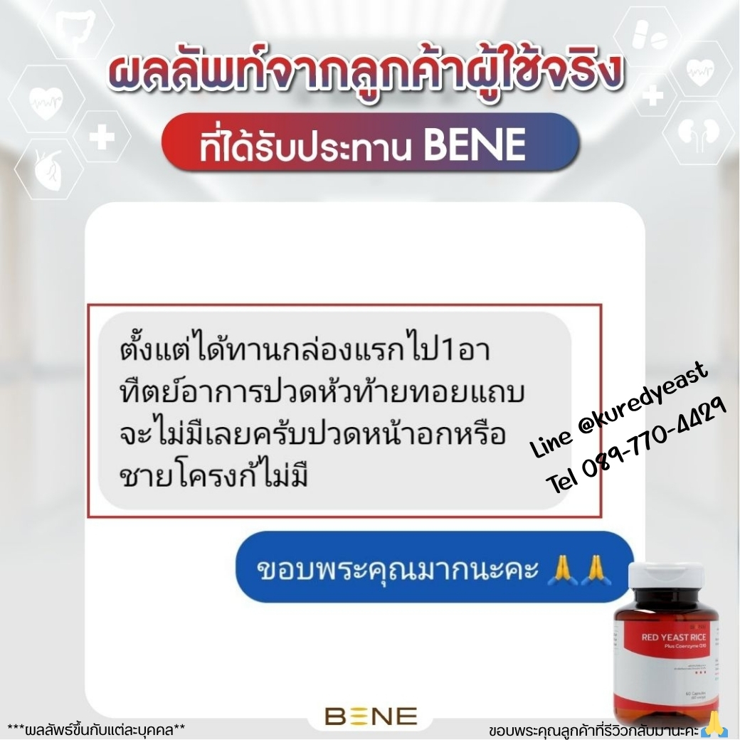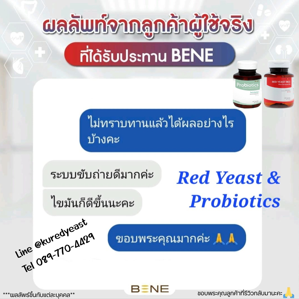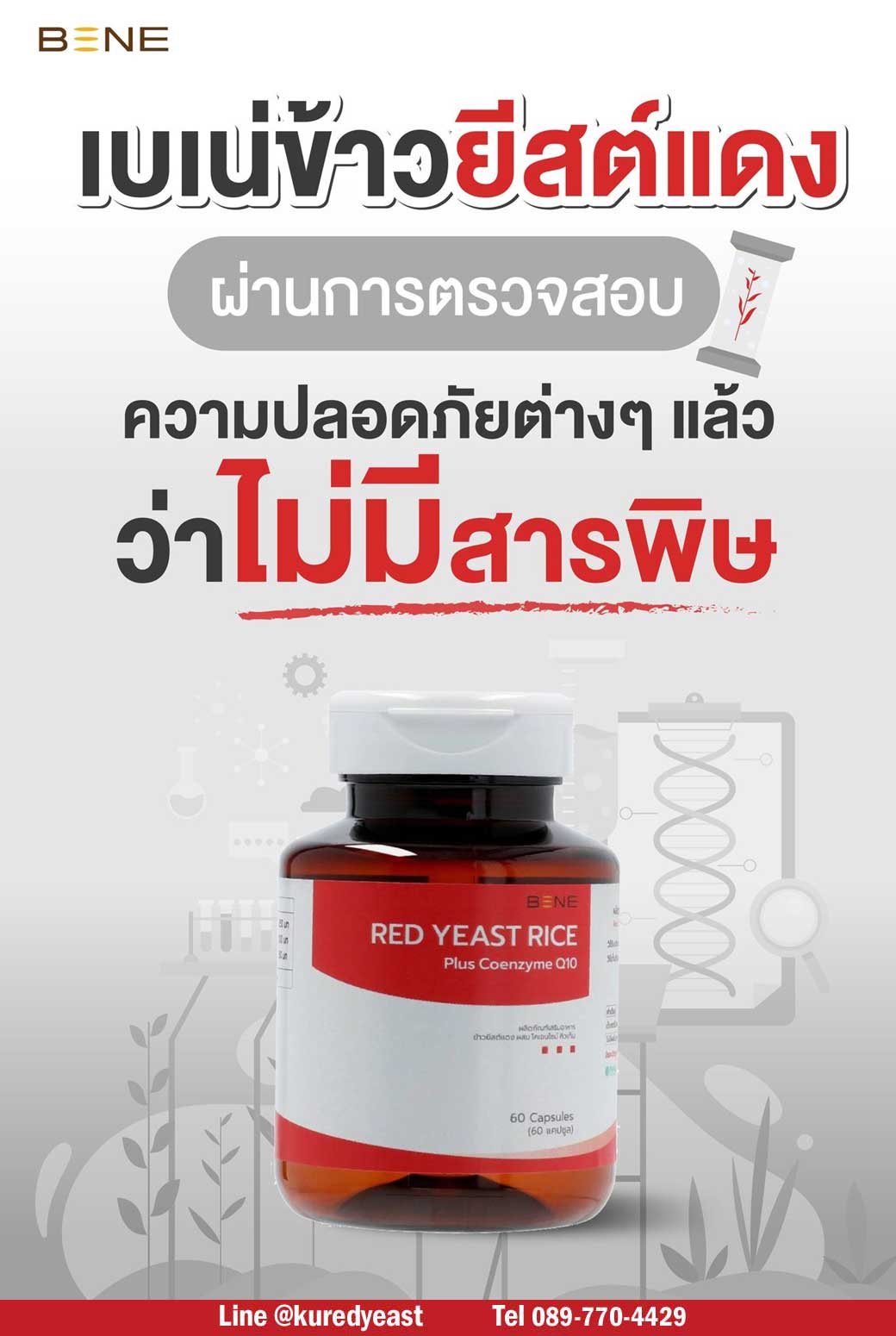 เรื่องราวและที่มาของผลิตภัณฑ์ข้าวยีสต์แดง BENE Red Yeast Rice สารออกฤทธิ์สำคัญในข้าวยีสต์แดง จาก บทสัมภาษณ์ ศ.ดร.บุษบา ยงสมิทธิ์ ภาควิชาจุลชีววิทยา คณะวิทยาศาสตร์ มหาวิทยาลัยเกษตรศาสตร์ Red Yeast Rice ผลิตภัณฑ์ข้าวยีสต์แดงเป็นผลงานวิจัยที่ทำโดยคนไทย จุลินทรีย์ไทย ข้าวไทย เพื่อคนไทย โดยนักวิจัยที่เชี่ยวชาญ มีการตรวจสอบสารสำคัญ ตรวจสอบความปลอดภัยและสารปนเปื้อนอย่างสม่ำเสมอ จึงมั่นใจได้ว่าลูกค้าจะได้ผลิตภัณฑ์ Red Yeast Rice มีคุณภาพจริงๆ