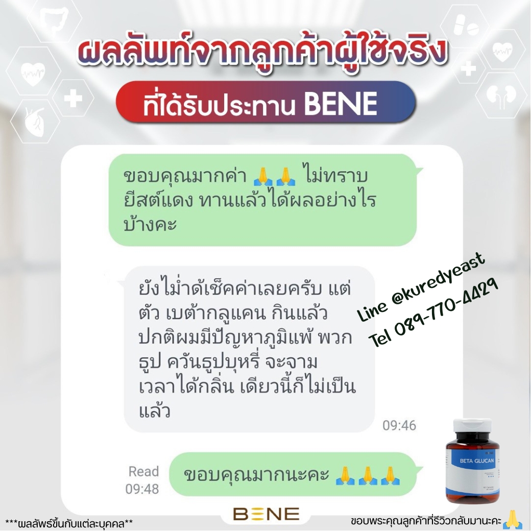 บริษัท เบเน ลิฟวิ่ง จำกัด นอกจากจะผลิต Red Yeast Rice ผลิตภัณฑ์เสริมอาหารข้าวยีสต์แดง แล้ว ยังมีผลิตภัณฑ์ยีสต์ เบต้ากลูแคน Yeast Beta-glucan ที่ช่วยเสริมภูมิคุ้มกัน ซึ่งเป็นผลิตภัณฑ์งานวิจัยจากมหาวิทยาลัยเกษตรศาสตร์ อีกตัวหนึ่ง เบต้ากลูแคนเหมาะสำหรับผู้ที่มีอาการภูมิแพ้ ผู้ที่เป็นหวัดบ่อย เจ็บป่วยบ่อย ภูมิคุ้มกันอ่อนแอ ผู้ที่ทำงานหนัก พักผ่อนน้อย ผู้ป่วยที่ต้องการฟื้นฟูร่ายกายหลังผ่าตัด ผู้ป่วยมะเร็งที่รับเคมีบำบัด รวมถึงคนทั่วไปที่ต้องการบำรุงร่างกาย เสริมภูมิคุ้มกันให้แข็งแรง